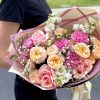 Букет из розовых гвоздик, пионовидных и кустовых роз в Майкопе